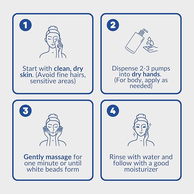 - + FACE & BODY + This exfoliating face and body wash is designed for the face and the body such as the neck, elbows, hands, and heels. Gently buff away dry skin and instantly polish and soften your skin.