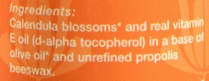 - INGREDIENTS: Certified organic calendula blossoms infused in a base of certified organic olive oil and unrefined propolis beeswax.