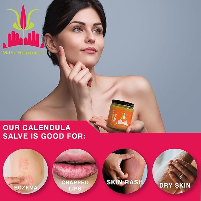 MJ's Herbals Calendula Salve - Skin Soothing Balm, Eczema Cream, Diaper Rash, Scars, Bug Bites, Made w/Calendula Blossoms & Propolis Beeswax (1 oz)