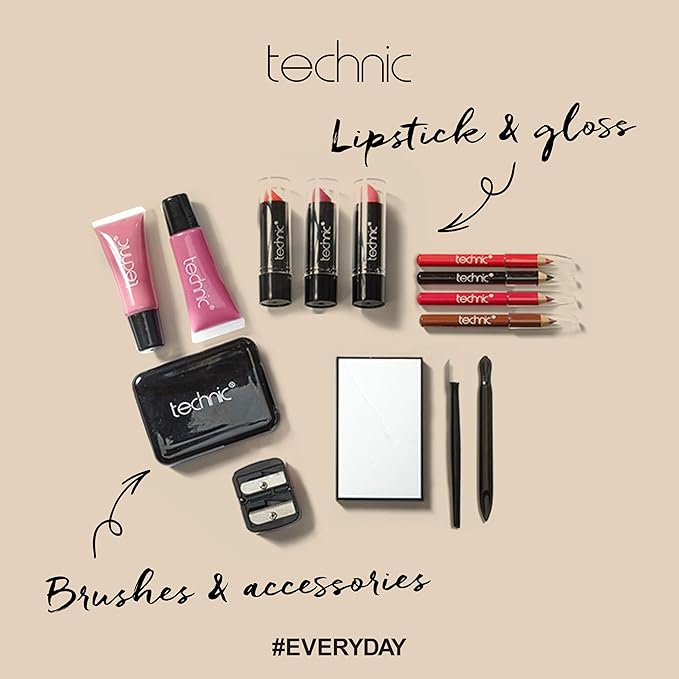 - Product Benefits : Be prepared for any occasion with this clear filled vanity case from Technic. Contains all your new makeup and accessories. Perfect as a gift, for travel, and for expressing your style while being cruelty-free. Be prepared for any occasion with this clear filled vanity case from Technic. Contains all your new makeup and accessories. Perfect as a gift, for travel, and for expressing your style while being cruelty-free.