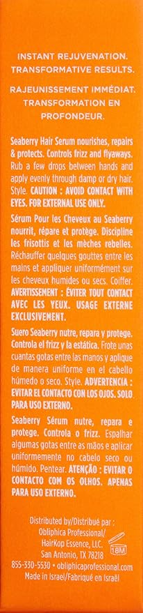 Obliphica Seaberry Leave in Hair Serum for Fine & Medium Hair - Vitamins and Omegas for Frizz Free & Nourished Hair - Hair Serum for Dry Hair and Growth - 2.2 Fl Oz