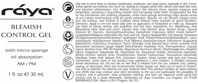 RAYA Blemish Control Gel (703) | Oil Controlling Facial Treatment Serum for Oily and Break-Out Prone Skin | Helps Reduce and Clear Up Blemishes