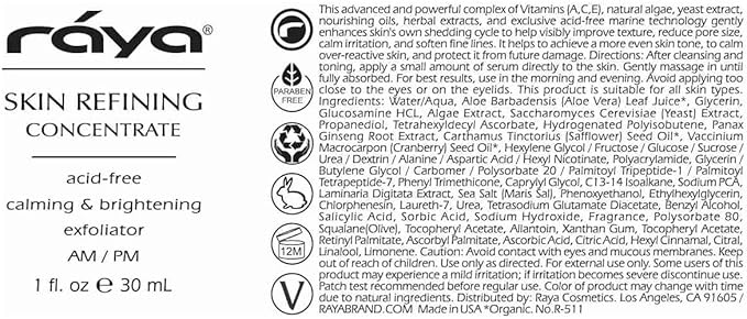 RAYA Skin Refining Concentrate (R-511) | Facial Serum for All Skin Types - Exfoliating, Pore-Minimizing & Complexion-Smoothing | Includes Vitamin C, Antioxidant, Anti Aging & Brightening Serum