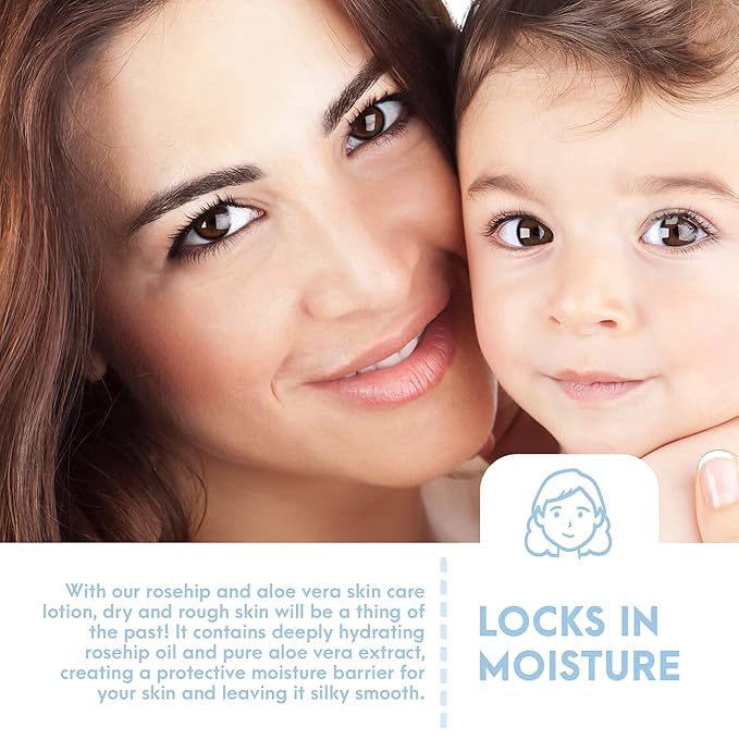 - LOCKS IN MOISTURE - With our rosehip and aloe vera lotion, dry and rough skin will be a thing of the past! This moisturizer contains deeply hydrating rosehip oil and pure aloe vera extract, creating a protective moisture barrier for your skin and leaving it silky smooth.