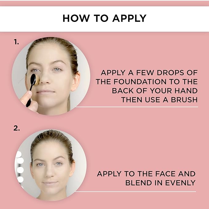 - APPLICATION: Apply a few drops of the foundation to the back of your hand. Then use a brush, make up sponge, or your fingers to apply to the face and blend in evenly. Please note: Shake well before use.