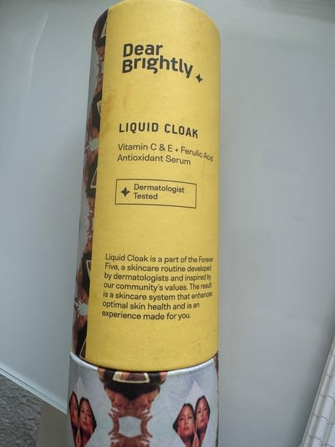 Vitamin C Serum with Ferulic Acid and Vitamin E for Glowing Radiant Skin by Dear Brightly, Liquid Cloak Facial Serum for Sensitive Skin, Refillable Glass Bottle, 0.7 fl oz