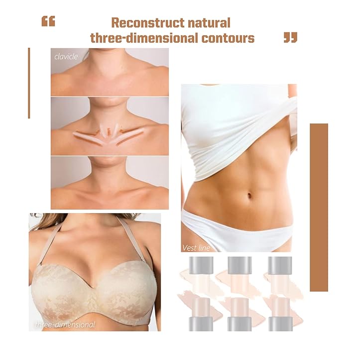 - 【Multifunctional】With this Cream Contour Stick, you can not only Create a natural 3D makeup look, you can also applied it to your body to create or highlight abs or clavicle. Waterproof long-lasting effect.