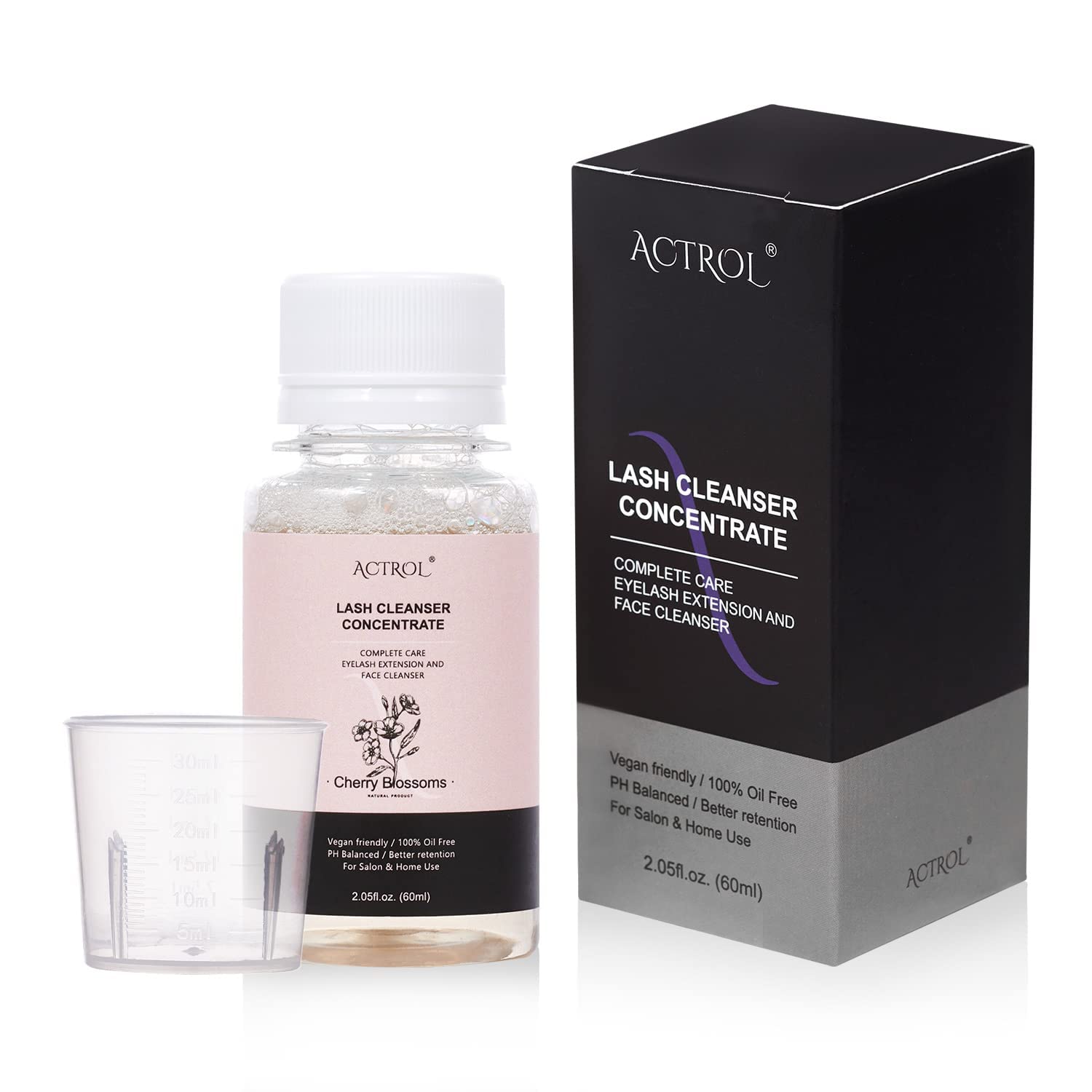 Eyelash Cleanser Concentrate 60ml Cherry Blossom Professional Lash Shampoo Foaming Cleanser DIY Non-lrritating Wash for Extensions Lashes with Salon Home Care-Makes 12 Bottles