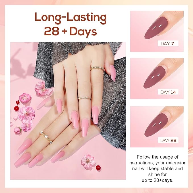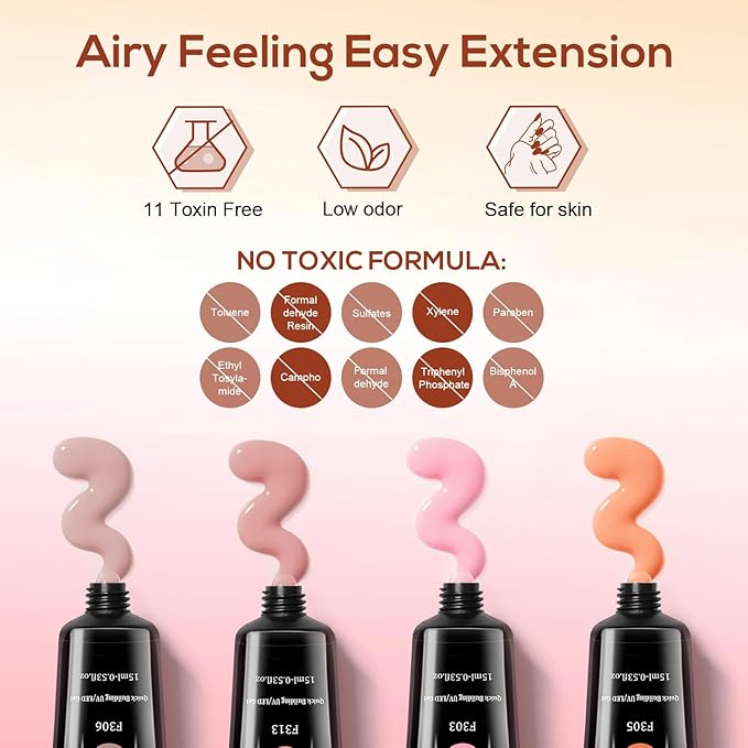 - Healthy,Natural,Strong,Flexible:JEWHITENY poly gel made with non-toxic ingredients keeping your nails healthy with a low odor formula!Has high strength and toughness without cracking or peeling. superior to other nail extension products, and fits your nails seamlessly。The new upgraded formula makes your lengthened nails as flexible, strong and lightweight as natural growing nails.