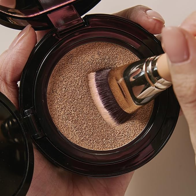 - Glowy skin finish and coverage at the same time by combination of brush and puff