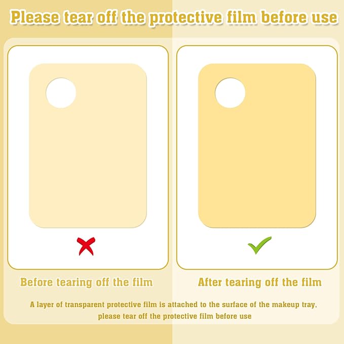 - Acrylic material: The makeup mixing tray is made of smooth high-quality acrylic, the color display is clear and beautiful, and the color comparison is direct. Friction-resistant, no cracking, not brittle.Before use, you need to tear off the protective film on the surface.