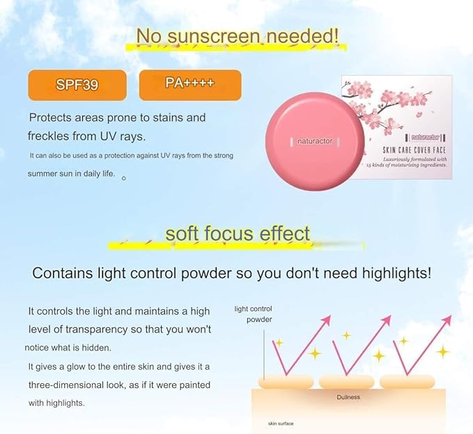 - High Coverage Foundation: Achieve flawless skin with our concealer-like high-cover foundation. It expertly conceals blemishes, freckles, and pores, giving you a smooth and even complexion.