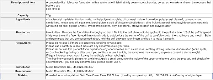 NATURACTOR Concealer 152 Natural Skin Care Cover Face 0.7 oz - Full Coverage Foundation, Made in Japan
