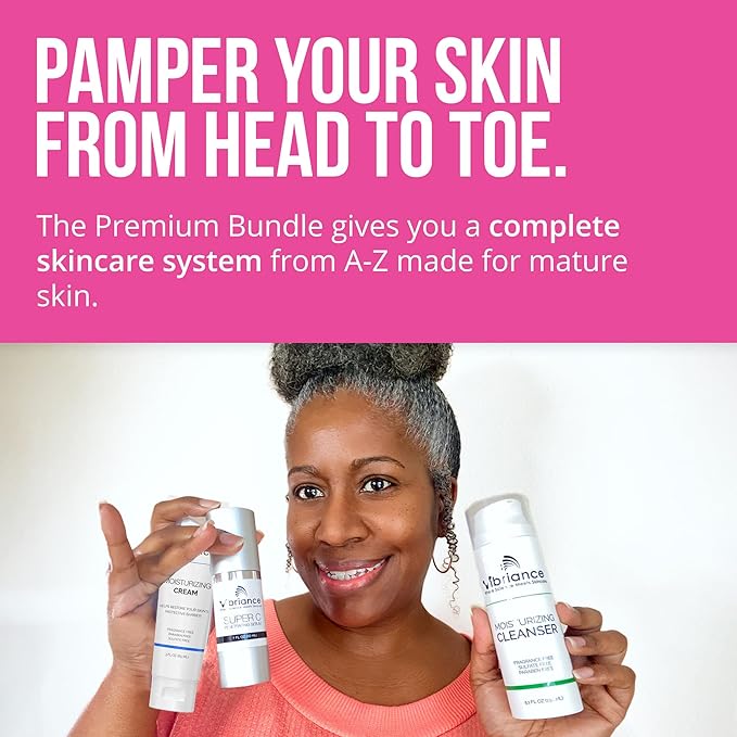- Premium skincare - The ultimate self care kit for mature skin, the Vibriance Premium Bundle includes our all-in-one Super C Serum, ultra gentle Moisturizing Cleanser, super light-weight Moisturizing Cream, Sheer Zinc Sunscreen, and Age Defying Body Serum, all in one pack.