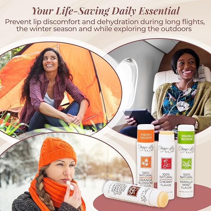 - An Assortment of Flavors –– Indulge in the deliciously soothing flavors of our Cherry Lip Balm, Coconut Lip Balm, Vanilla Mint Lip Balm, and Orange Blossom Lip Balms. Switch your flavored lip balm to suit your mood or preference. Add an element of fun to your daily routine. Mix and match your lip balm for skin care or share it with friends and family