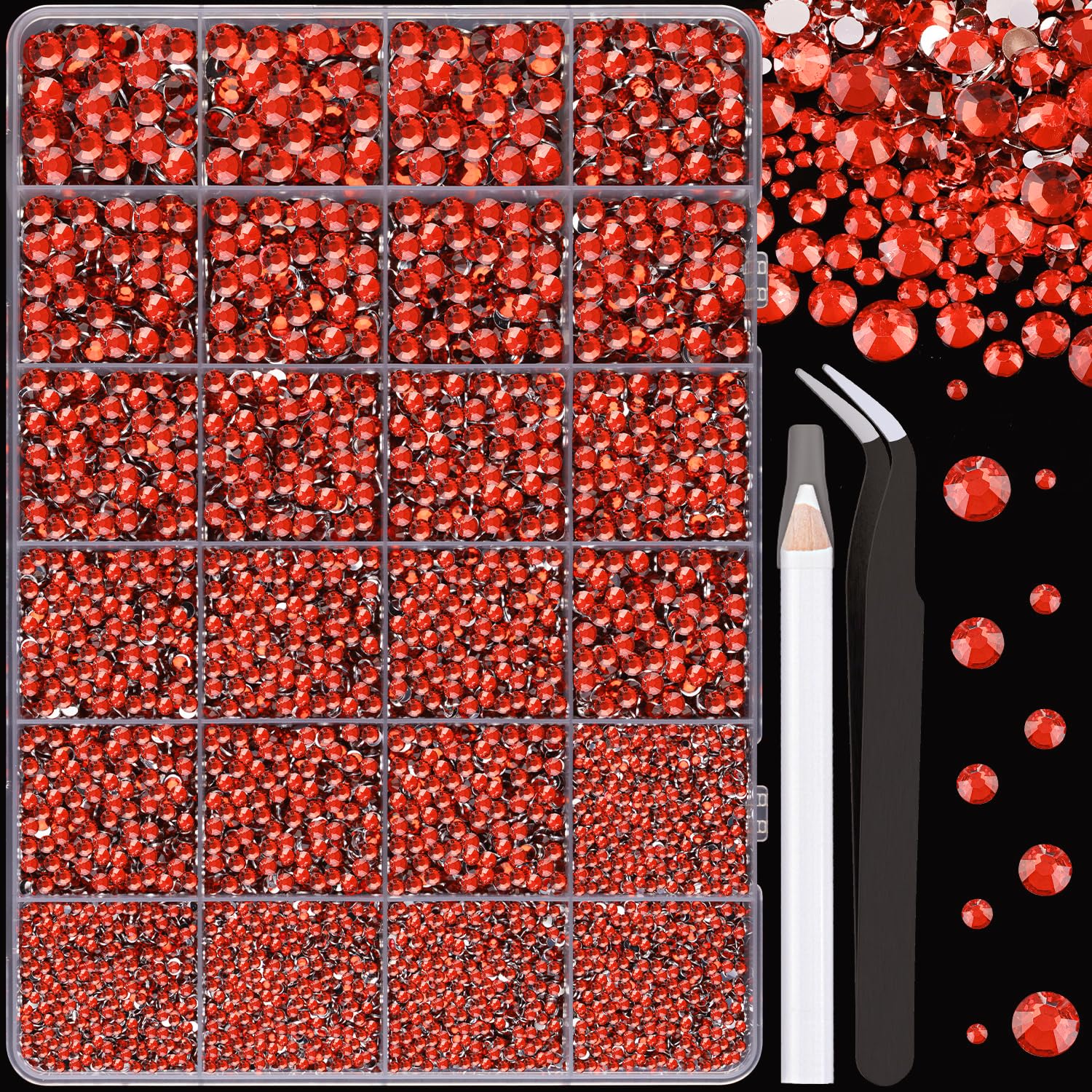 - đź’ŽPACKAGE CONTENT -- The package includes 1 box with 24 grids, featuring a variety of sizes: 2mm x 5 grid, 3mm x 6 grid, 4mm x 5 grids, 5mm x 5 grids, and 6mm x 3 grids, approx. 25000 pcs of 2-6mm bling-out resin rhinestones (Red). 1 tweezers and 1 pickup pen are included for easily picking up of rhinestones. The large amount will support you to fulfill a number of your wonderful DIY decoration ideas.