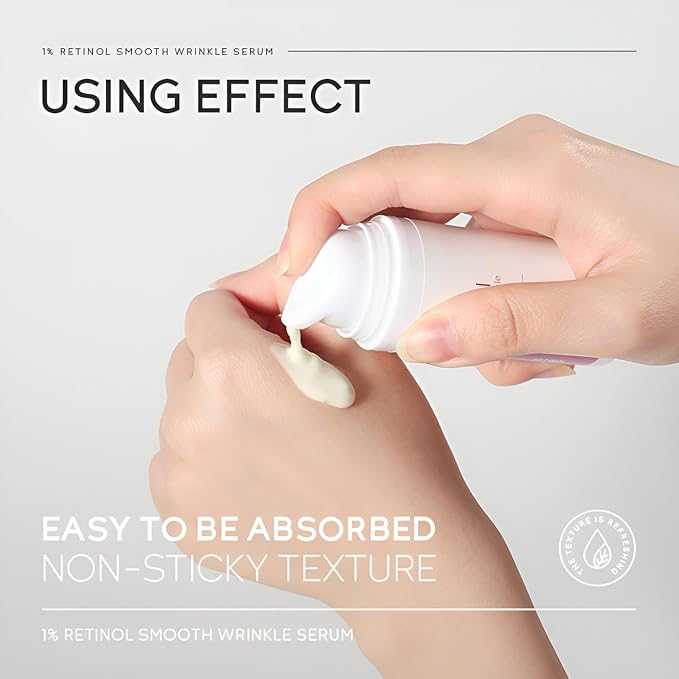 - 【Key Benefits】Serum contains 1% Retinol, which penetrates deeply to accelerate skin turnover, smooth wrinkles, visibly lighten dark spots, and enhance skin elasticity and radiance. Niacinamide and Vitamin E work synergistically to help your skin build tolerance to Retinol, even skin tone, and leave your skin supple and glowing.
