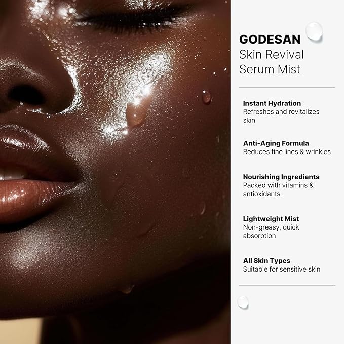 - 🌲Setting Makeup🌲Use Skin Revival Serum Mist after applying makeup to set it in place. It provides a natural, dewy finish while preventing cakiness.