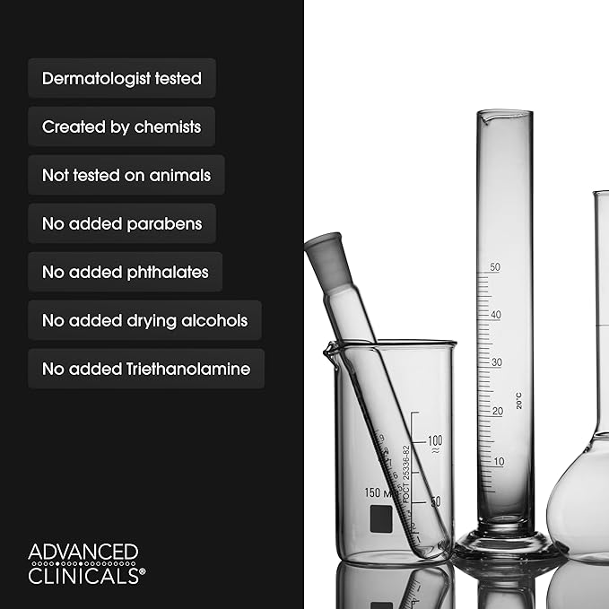 - SCIENCE-BACKED SKINCARE – Advanced Clinicals offers science-driven formulas featuring well known and proven ingredients. Formulated by our in-house R&D team, with over 25 years of skincare expertise, Advanced Clinicals products are dermatologist tested and formulated with your skincare goals in mind. Made in the Midwest with globally sourced materials.