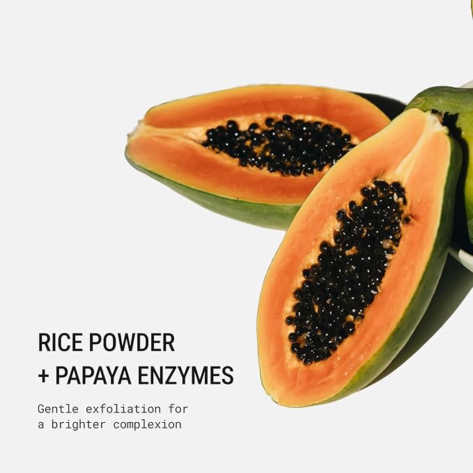 - Hydrating Cleanser: Formulated with Rice Powder and Papaya Enzymes, this facial cleanser hydrates and renews your skin while cleansing impurities.