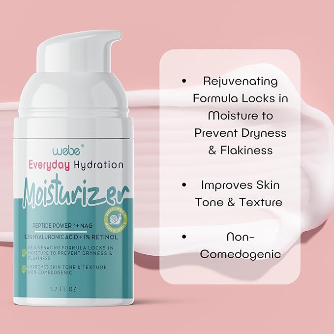 WEBE Hydration Snail Mucin Moisturizer – Hydrating Face Cream with Hyaluronic Acid, Retinol & Peptides for Smoother, Youthful-Looking Skin