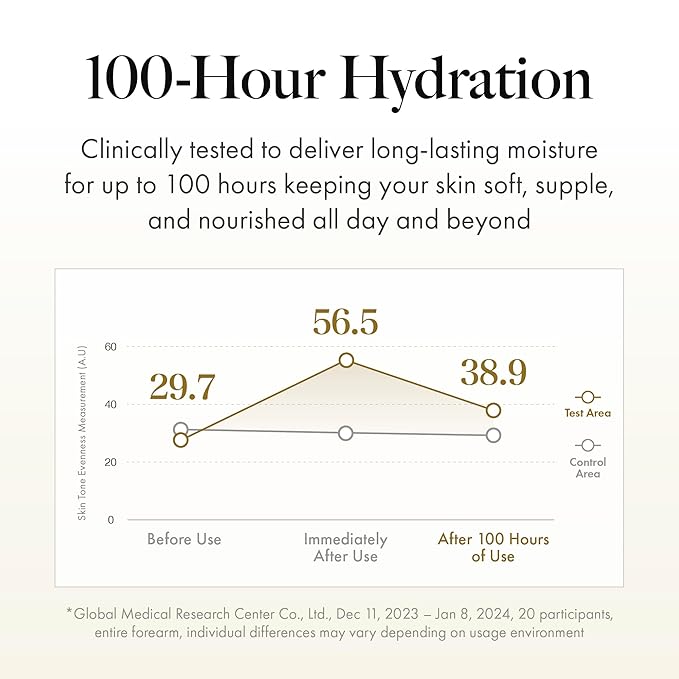 - Long-Lasting Hydration: Delivers moisture for up to 100 hours with Type 3 vegan collagen, ceramides, and fatty acids, promoting a supple-looking surface.