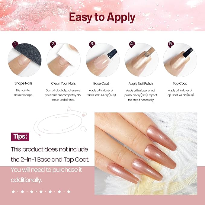 - High Quality:Eco friendly and non irritating. Keeps you up to date with the latest colors and effects for a sparkling look. With proper preparation and care, mirror nail polish set lets you experience how to be the perfect goddess and double your glamour.