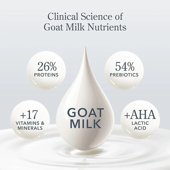 - THE GOAT MILK DIFFERENCE - Rich in lactic acid (a natural exfoliant), vitamins & minerals, goat milk has the same pH as human skin! It helps keep the microbiome well-balanced and prevents visible signs of irritation, sensitivity & premature aging.