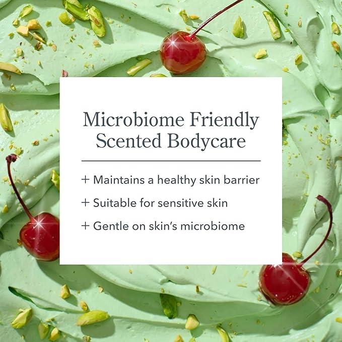 - BODY LOTION - A body lotion made with rich goat milk that delivers long-lasting moisture for dry skin, without irritation. Scented with a nutty yet sweet blend of pistachio nougat, dark cherry, and sugar glacé that’s like a dessert for skin.