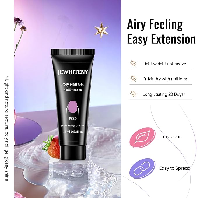 - [Great Gift & Solid Support]: The JEWHITENY poly gel nail kit makes a thoughtful gift for family and friends. We stand by our products and customers— If you have any issues, contact us, and we'll solve them quickly. Shop with confidence!