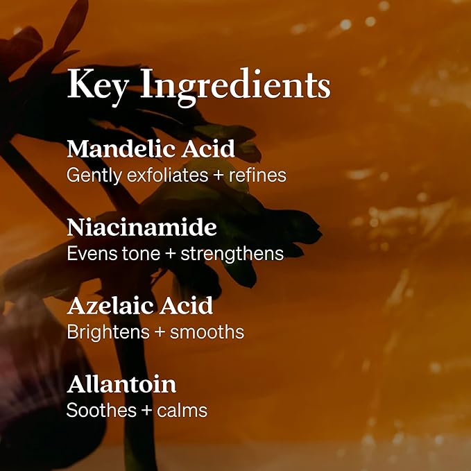 - GENTLE, POWERFUL FORMULA: Formulated with Mandelic Acid, Niacinamide, Azelaic Acid, Vitamin C (through Kakadu Plum), and Allantoin to help skin tone, texture, and skin barrier health. Color may change over time, but efficacy remains the same