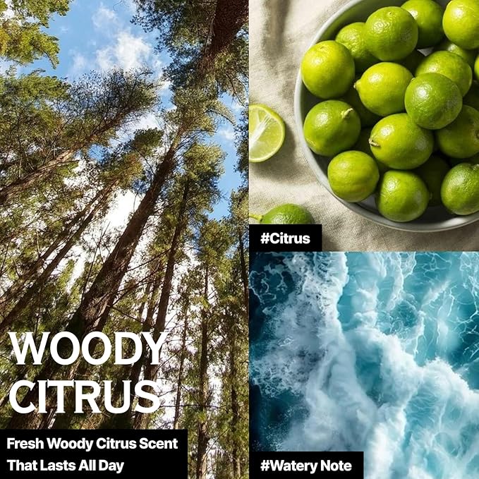 - WOODY CITRUS SCENT - Sophisticated, refreshing fragrance that blends crisp citrus notes with warm, woody undertones.The scent is subtle yet long-lasting—keeping your hair smelling clean, elegant, and uplifted from morning to night without overpowering your senses.