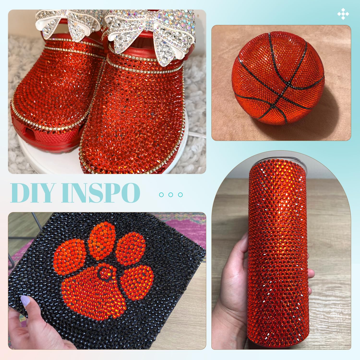- WIDE APPLICATION -- These sparkling iridescent resin crystals are perfect for creating dazzling looks. Use them for bedazzling DIY crafts like shoes, tumblers, mugs, bottles, phone cases, popsockets, scrapbooks, photo frames, diamond paintings, greeting cards, bags, glasses, guitars, keychains, hats, masks, hair clips, bracelets, wristbands, clothing, wedding dresses, and more. Apply it to what you want to bling!