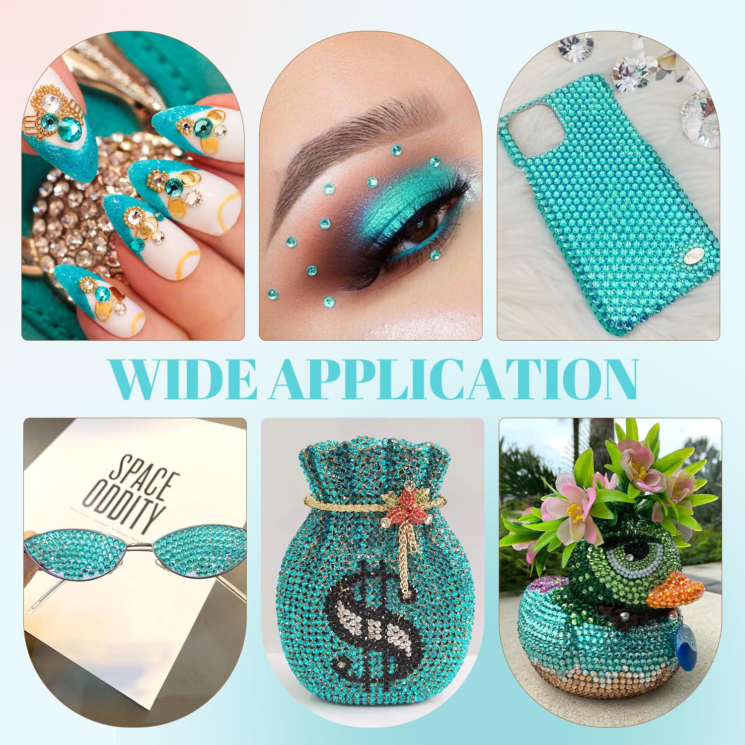6100Pcs Resin Rhinestones for Crafting with 2Pcs 10ml B7000 Jewelry Glue, 1 Box Flatback Crystals Diamond (Aquamarine) for Bedazzling Crafts DIY Nail Art,Non Hotfix Gems for Clothing Shoes Tumblers