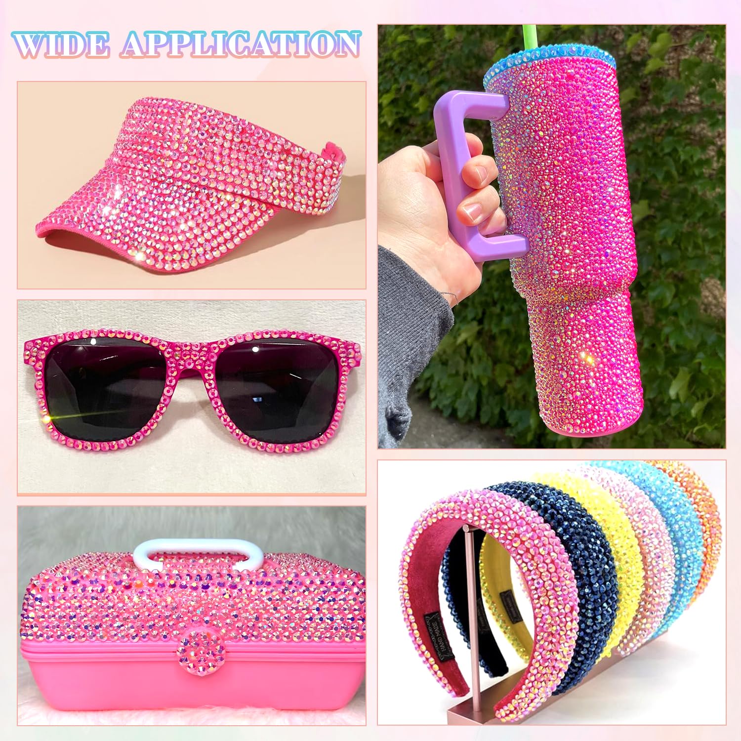 - PACKAGE CONTENT – This all-in-one bedazzler kit includes everything you need to start creating dazzling designs: 1 box of Hot Pink AB rhinestones with 24 grids (approx. 30,000 pcs of bedazzling rhinestones assorted size SS6/10/16/20/30 ), 1 precision tweezers, 1 pickup pen for handling small gems, and 3 tubes of B7000 jewelry glue for secure application.