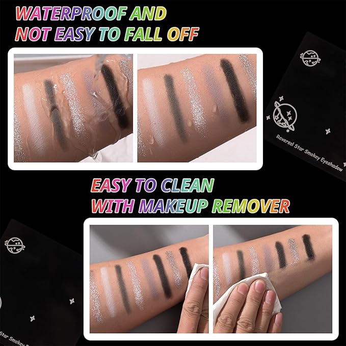 - 【9-Color Eyeshadow Palette】This collection includes exaggerated black and silver metallic smoky eyeshadow palettes as well as everyday nude eyeshadow palettes, whether using a single color or mixing multiple shades, the possibilities are endless