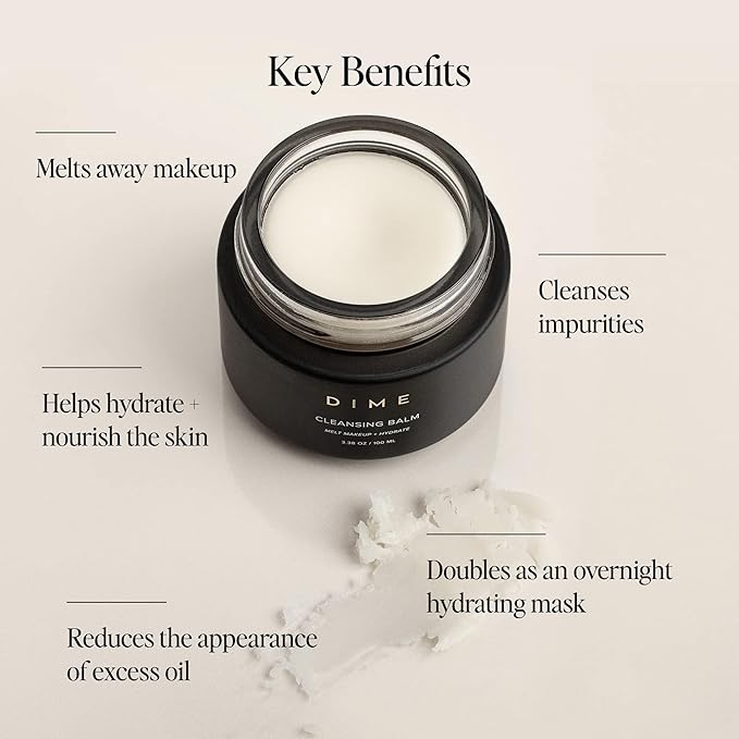 - DOUBLE CLEANSE: Double cleansing is a crucial aspect of having clear, healthy skin. First, use our Cleansing Balm to remove makeup and surface-level impurities. Next, use your favorite DIME cleanser.