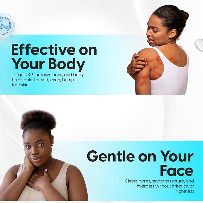 - FACE & BODY MULTI-USE SOLUTION- Targets back acne, arm bumps, facial congestion, and rough patches on knees, elbows, and more. Safe for sensitive or acne-prone skin and suitable for daily use.