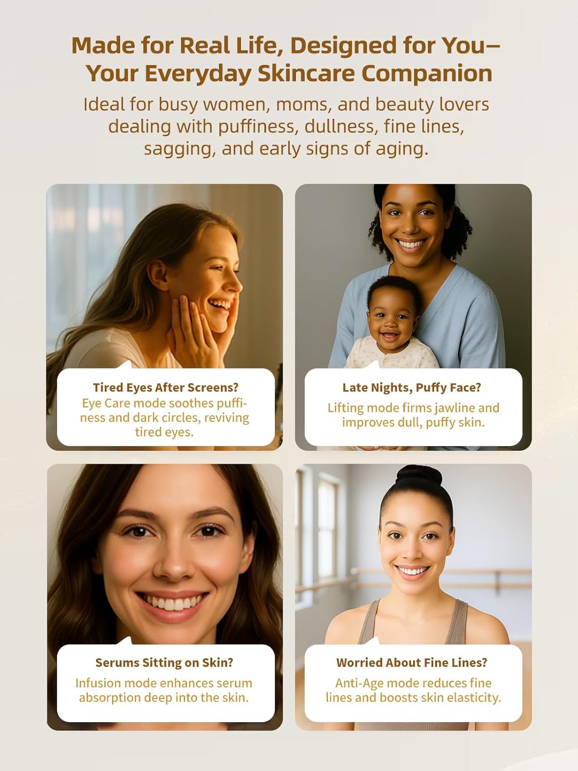 - Eye Care and Wrinkle Reduction for a Refreshed Look: Specially designed for the delicate eye area, this device combines intermittent vibration, heat, and MFIP technology to reduce dark circles, puffiness, and fine lines. Achieve a refreshed, youthful look, helping to relieve eye fatigue and restore a radiant, bright-eyed appearance.